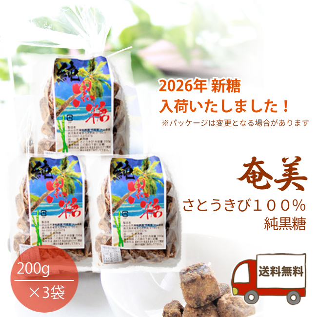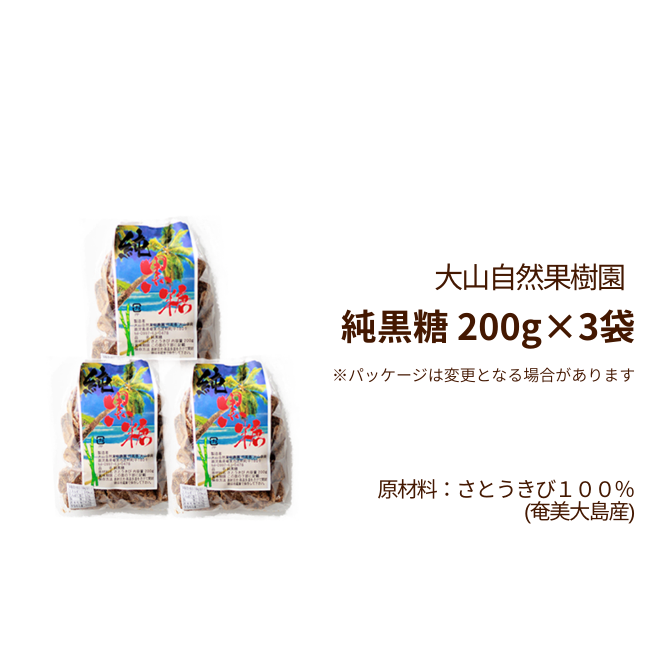【2026年新糖入荷】純黒糖 奄美大山自然果樹農園 サトウキビ100% 国産 無添加 無農薬 200g×3袋【送料無料】