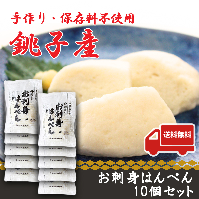 銚子老舗の手作りお刺身はんぺん|保存料・卵不使用|ふんわりとろける食感 10個セット