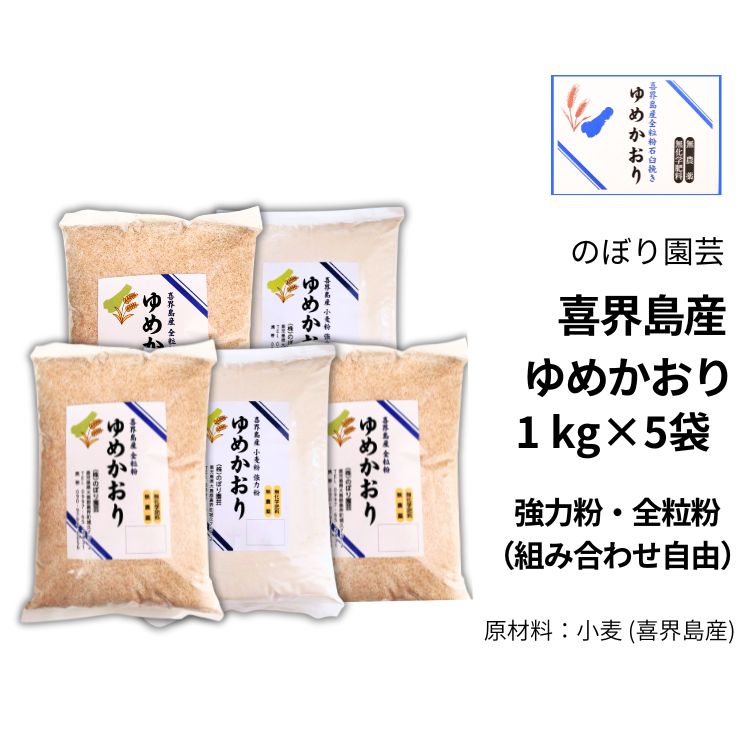喜界島産ゆめかおり 1kg×5袋 強力粉/全粒粉(組み合わせ自由)小麦粉 無農薬 国産 高たんぱく