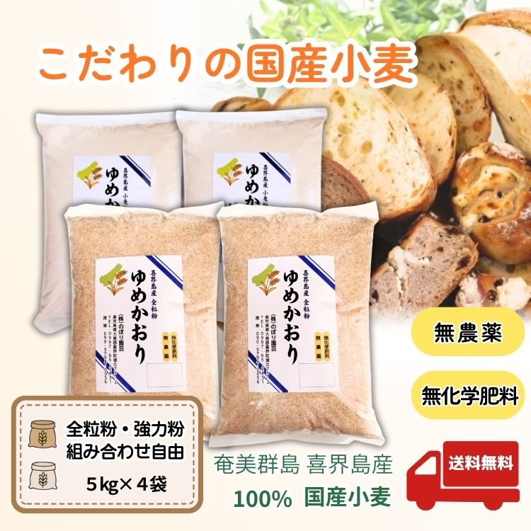 喜界島産ゆめかおり 5kg×4袋 強力粉/全粒粉(組み合わせ自由)小麦粉 無農薬 国産 高たんぱく