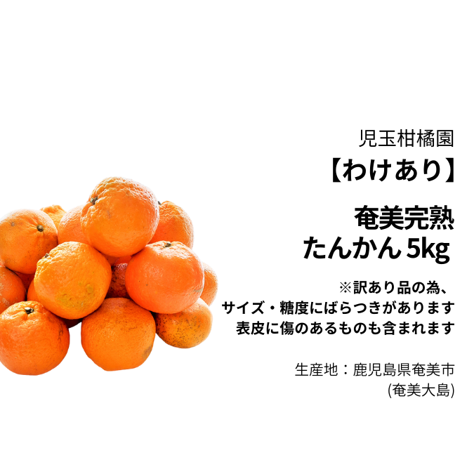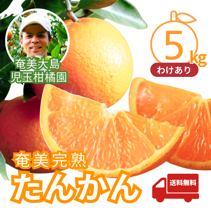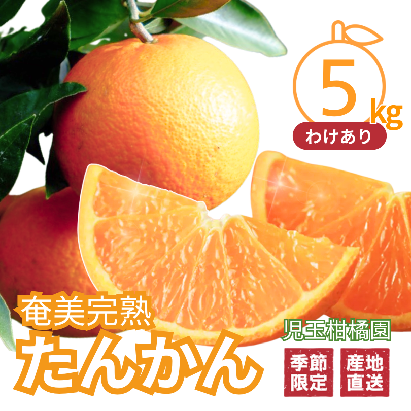 【送料無料】訳あり 完熟たんかん 奄美大島産 5kg|児玉柑橘園|家庭用・除草剤不使用 【2026年2月中旬〜3月発送】